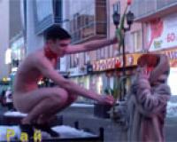 Обнаженный парень в розовом ошейнике решил поздравить дам в Екатеринбурге