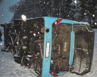 Эта авария произошла накануне утром, когда водитель пассажирского автобуса «БАЗ» неожиданно выехал на левую обочину, после чего его автобус перевернулся в кювет.