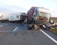Водитель «Ниссана» получил незначительные травмы и от медицинской помощи отказался. Водители-дальнобойщики грузовых фур не пострадали.