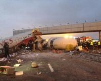Движение в обе стороны на Киевском шоссе было возобновлено в полном объеме только к полуночи, когда закончился разбор завалов на месте авиакатастрофы.